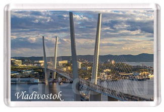 Мост темный, обрезан по высоте, вид непонятный и некрасивый. Название на английском. Магнит сделан из акриловой заготовки блеклой печатью на офисной бумаге простым струйным принтером. Наверное, очень дешевый. Сами купили бы такой?
