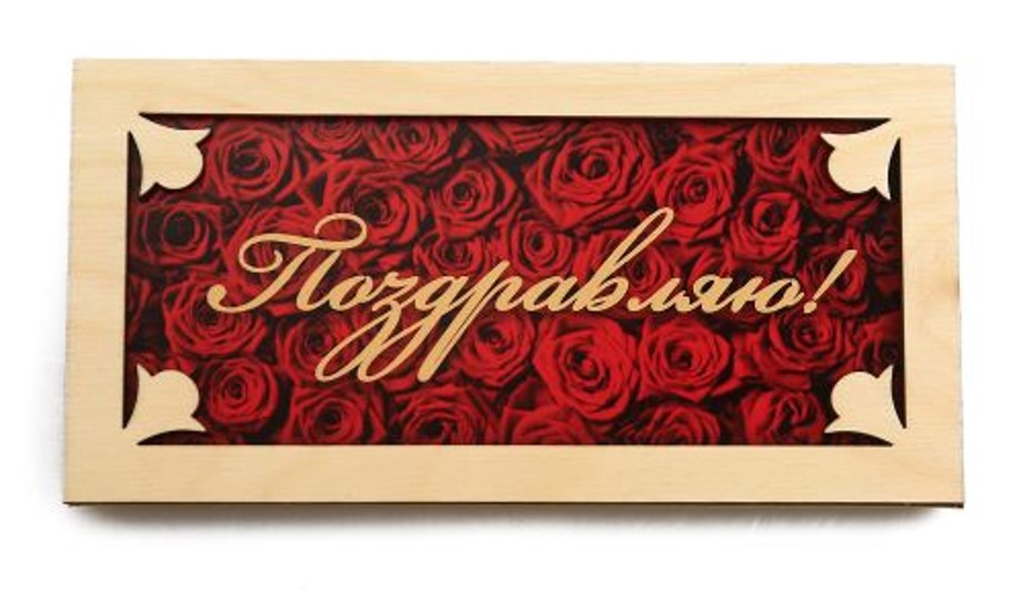 Деревянный конверт для денег ПОЗДРАВЛЯЮ (КРАСНЫЕ РОЗЫ) с полноцветным изображением.