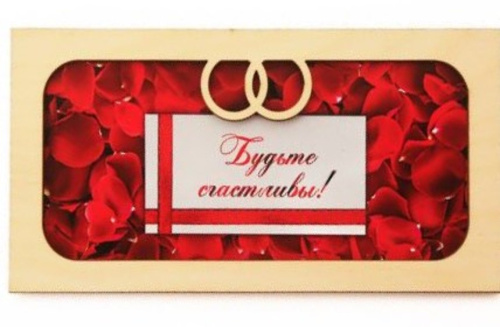 Деревянный конверт для денег БУДЬТЕ СЧАСТЛИВЫ! с полноцветным изображением.