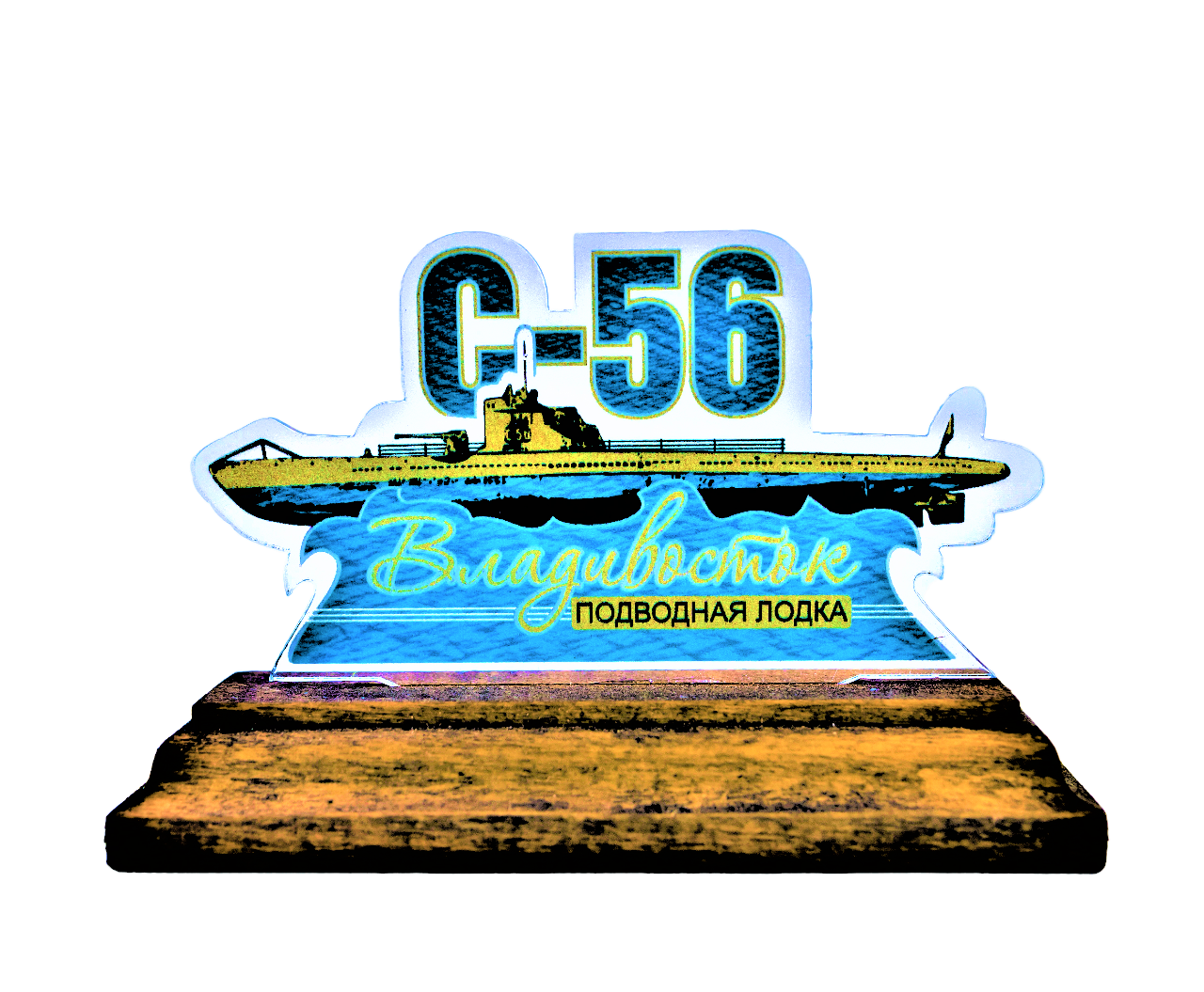 Сувенир настольный акриловый на подставке ВЛАДИВОСТОК ПОДЛОДКА. Размер 13х13х3 см. Материал: акрилоовое стекло 3 мм, массив сосны.. Упаковка: прозрачная ПВХ коробка.
