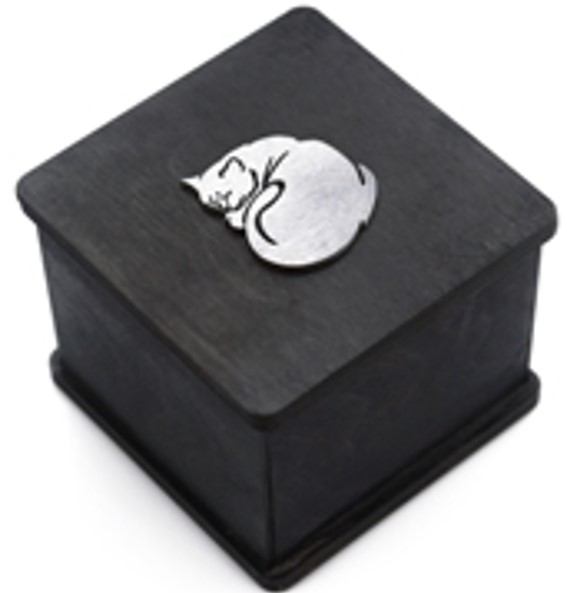 Урна для праха животных из березовой фанеры КОТИК СПИТ. Размер внешний 13х13х11,5см, внутренний 11х11х10см. Объем 1,2л. Покрытие ЛКМ. Цвет: эбеновое дерево. .