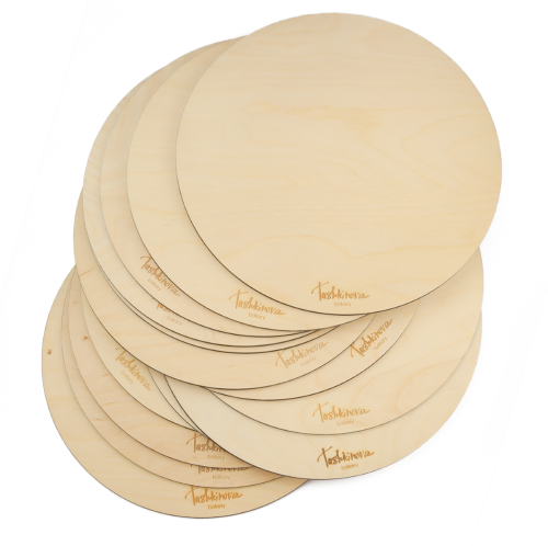 Подставка для торта круглая с выгравированным логотипом, Размер 200х200х4 мм. Материал: фанера березовая. Без упаковки.