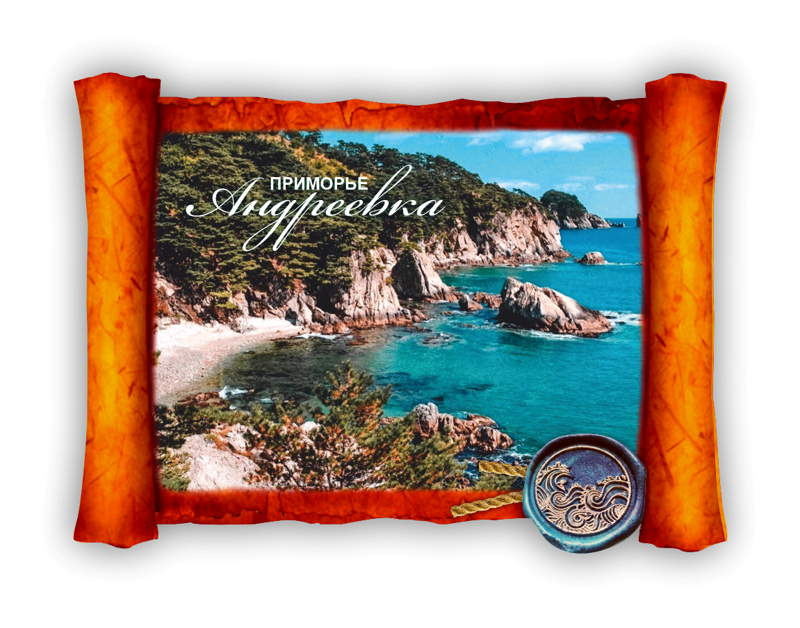 Магнит деревянный 1-слойный Свиток Андреевка Берег. Материал: ДВП, бумага. Размер 78х63х3 мм. Упаковка: ПП пакет