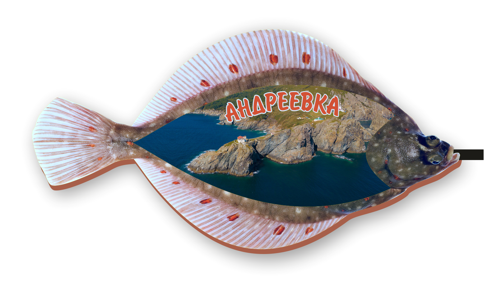 Магнит деревянный 2-слойный Камбала Андреевка Маяк