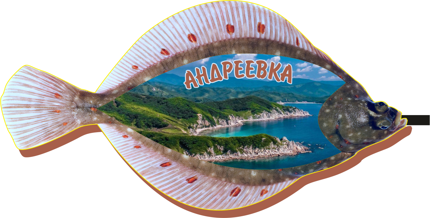 Магнит деревянный 2-слойный Камбала Андреевка Побережье