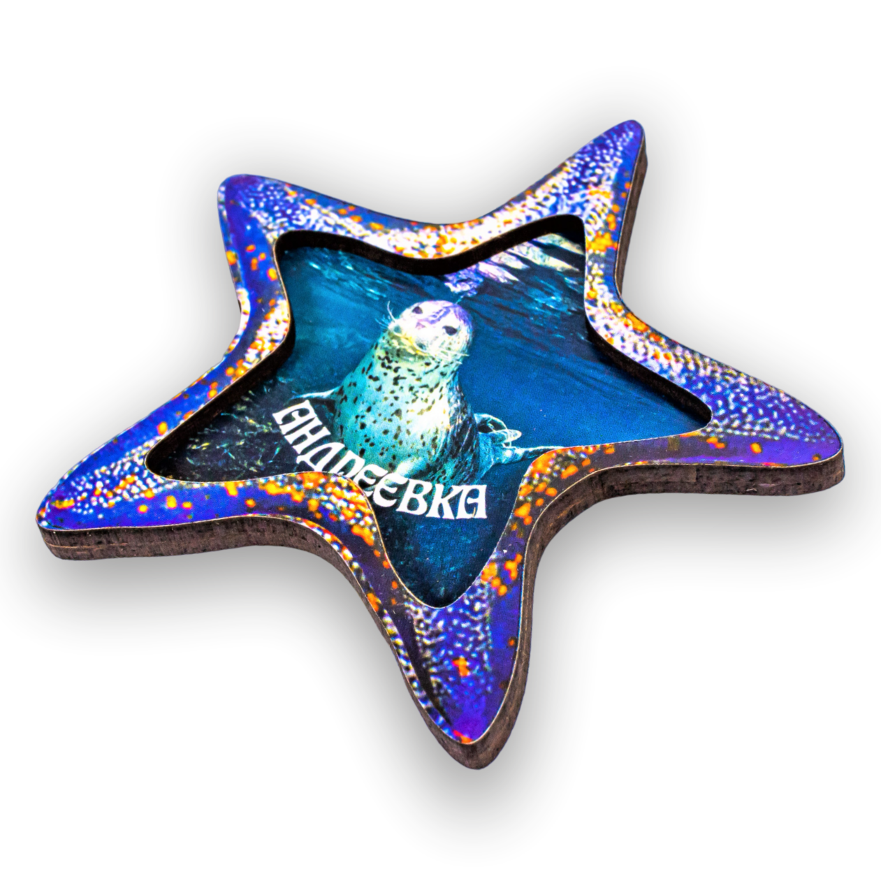 Магнит деревянный 2-слойный ЗВЕЗДА Андреевка Ларга