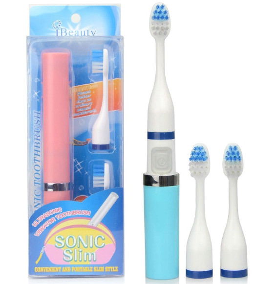 Ультразвуковая электрическая зубная щетка с двумя сменными насадками. Размер ручки: 161 x 19 x 19 мм
