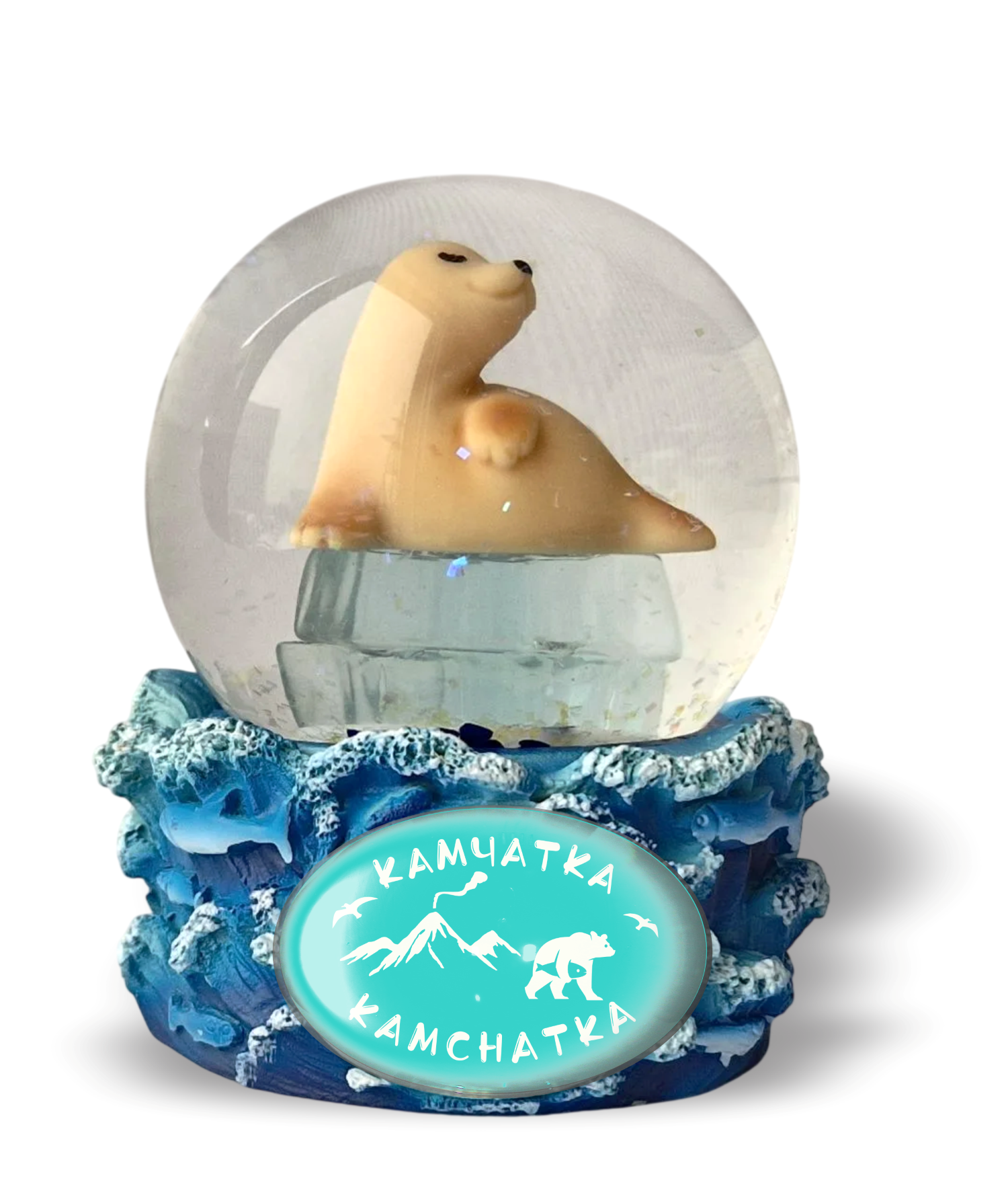 Стеклянный шар водный Камчатка Котик Коричневый диаметр 6.5 см. Размер 6.5х6.5х8.5 см. Материал: полистоун, стекло, вода,. Упаковка: картонная коробка.
