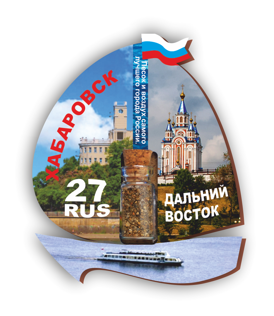 Магнит деревянный 2-слойный с бутылочкой песка ХАБАРОВСК ПАРУСНИК. Материал: ДВП, бумага, стекло, песок. Размер 70х80х12 мм. Упаковка: ПП пакет.