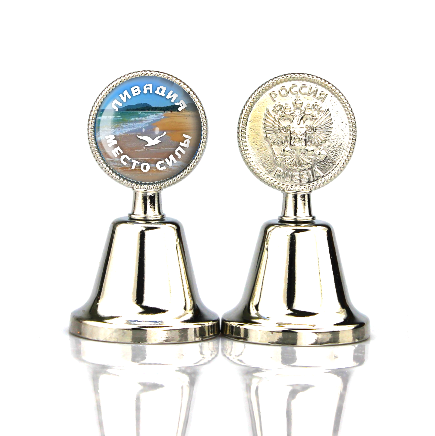 Колокольчик сувенирный с эпоксидной смолой Ливадия Пляж. Размер: 4.5х4.5х8 см. Материал: металл, эпоксидная смола. Упаковка: белая картонная коробка.