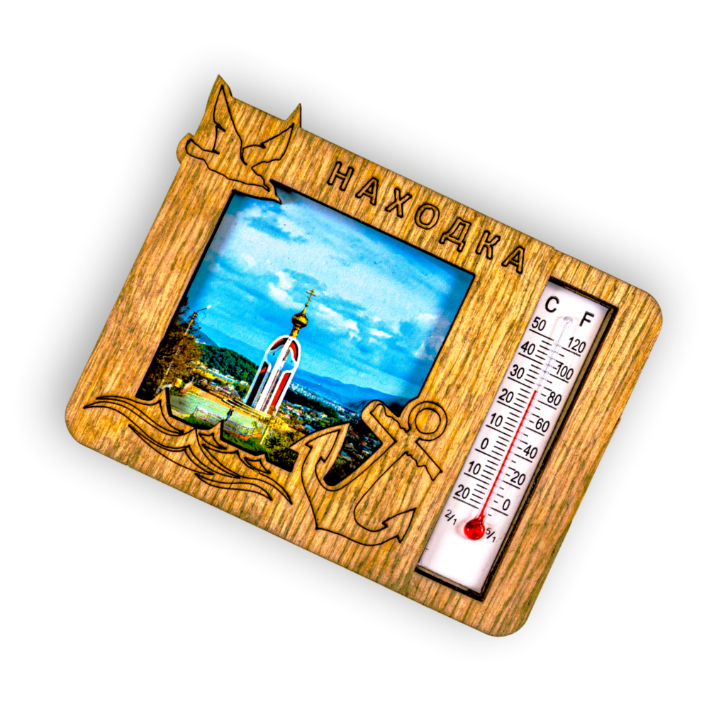 Магнит деревянный 2-слойный с термометром Находка День. Материал: фанера, ДВП, бумага. Размер 110х80х0,6 мм. Упаковка: ПП пакет.