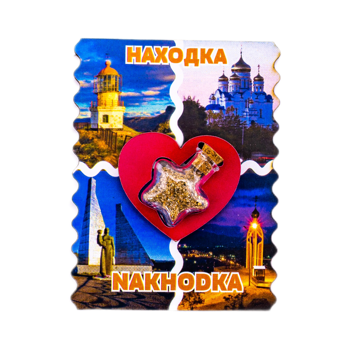 Магнит деревянный 2-слойный с бутылочкой песка НАХОДКА КОЛЛАЖ СЕРДЦЕ. Фанера березовая ФК. Размер 70х100мм. ПП пакет.