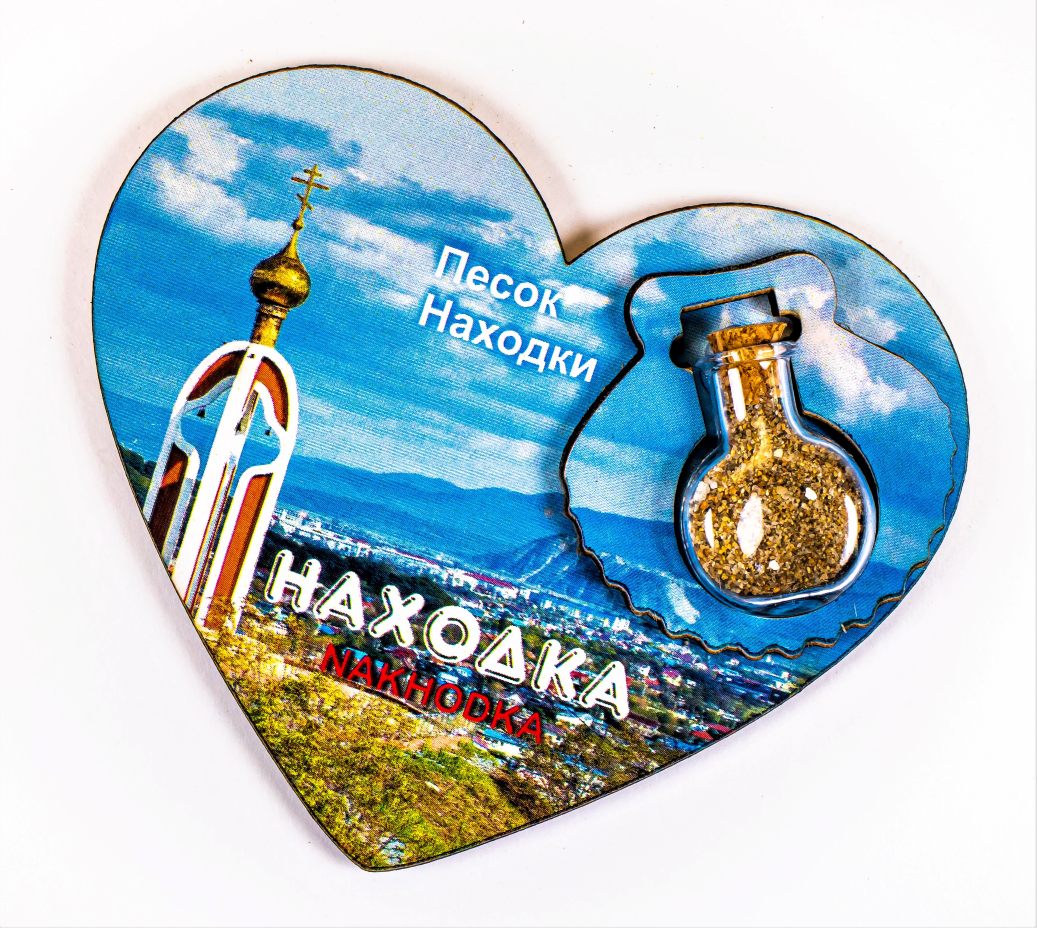 Магнит деревянный 2-слойный с бутылочкой песка СЕРДЦЕ Находка День
