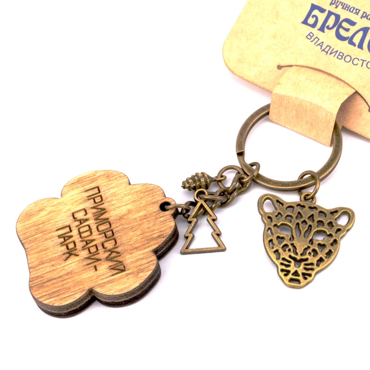Брелок деревянный 2-слойный ЛАПА ЛЕОПАРД с 3-мя металлическими подвесками ПРИМОРЬЕ