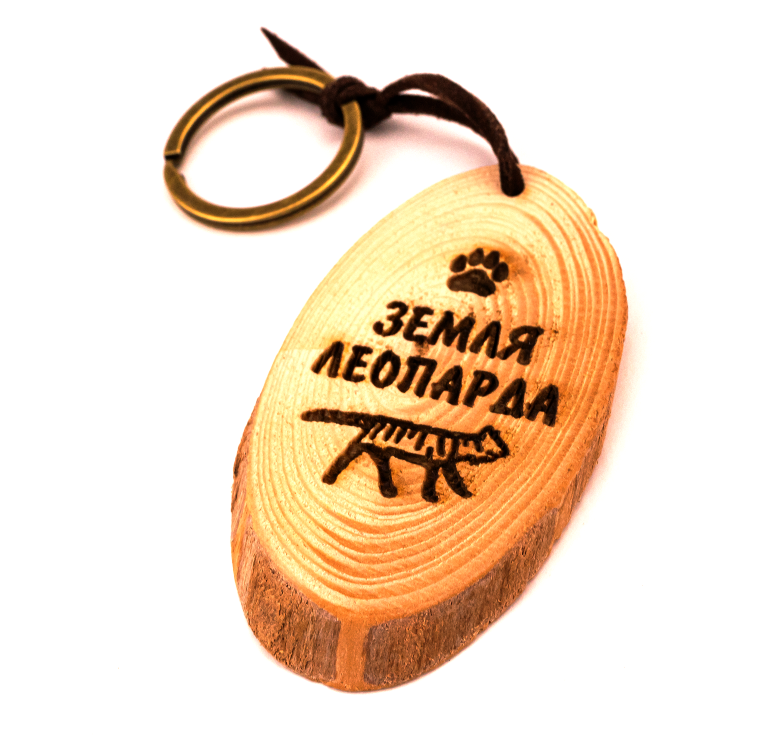 Брелок деревянный на спиле ТИГР ПРИМОРЬЕ с гравировкой на кожаноом шнурке. Кольцо: медь. Материал: дерево, ПВХ, металл. Размер: 10х6х0,7см. Упаковка: картонный подвес.