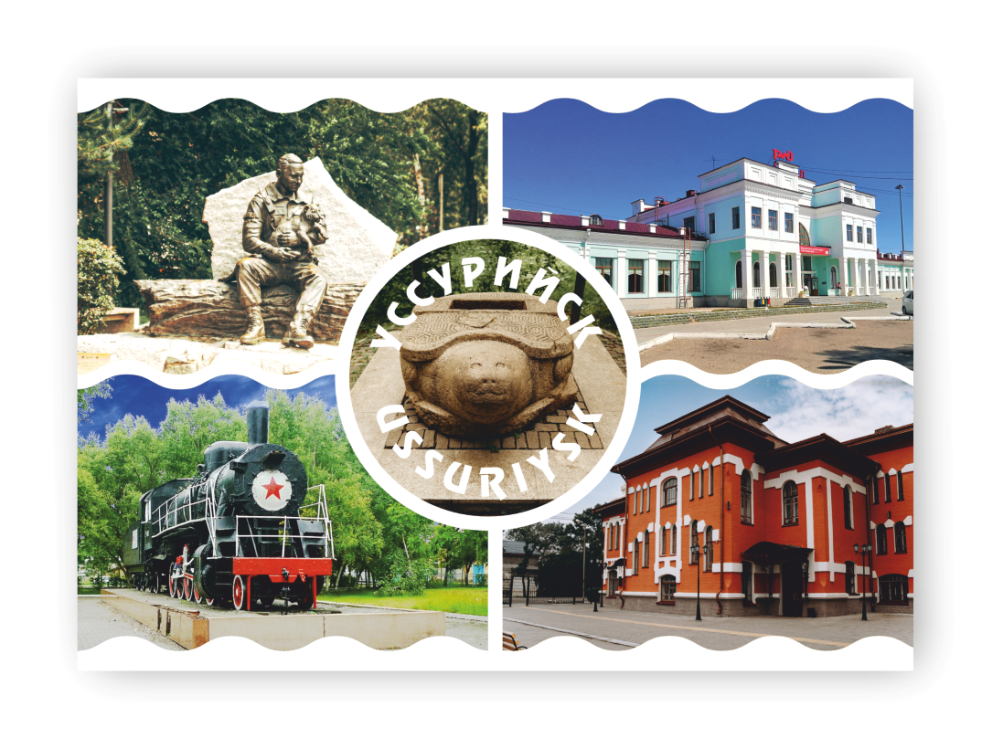 Открытка почтовая Уссурийск Коллаж. Размер 14,8 х 10,5 см. Материал: мелованный картон. Упаковка: ПП пакет.