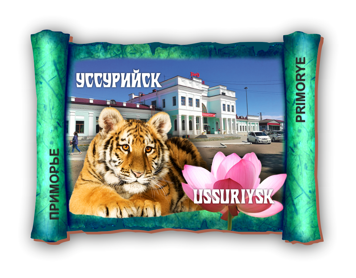 Магнит деревянный 1-слойный Свиток Уссурийск (Ж/Д вокзал) Материал: ДВП, бумага. Размер 78х63х3 мм. Упаковка: ПП пакет.