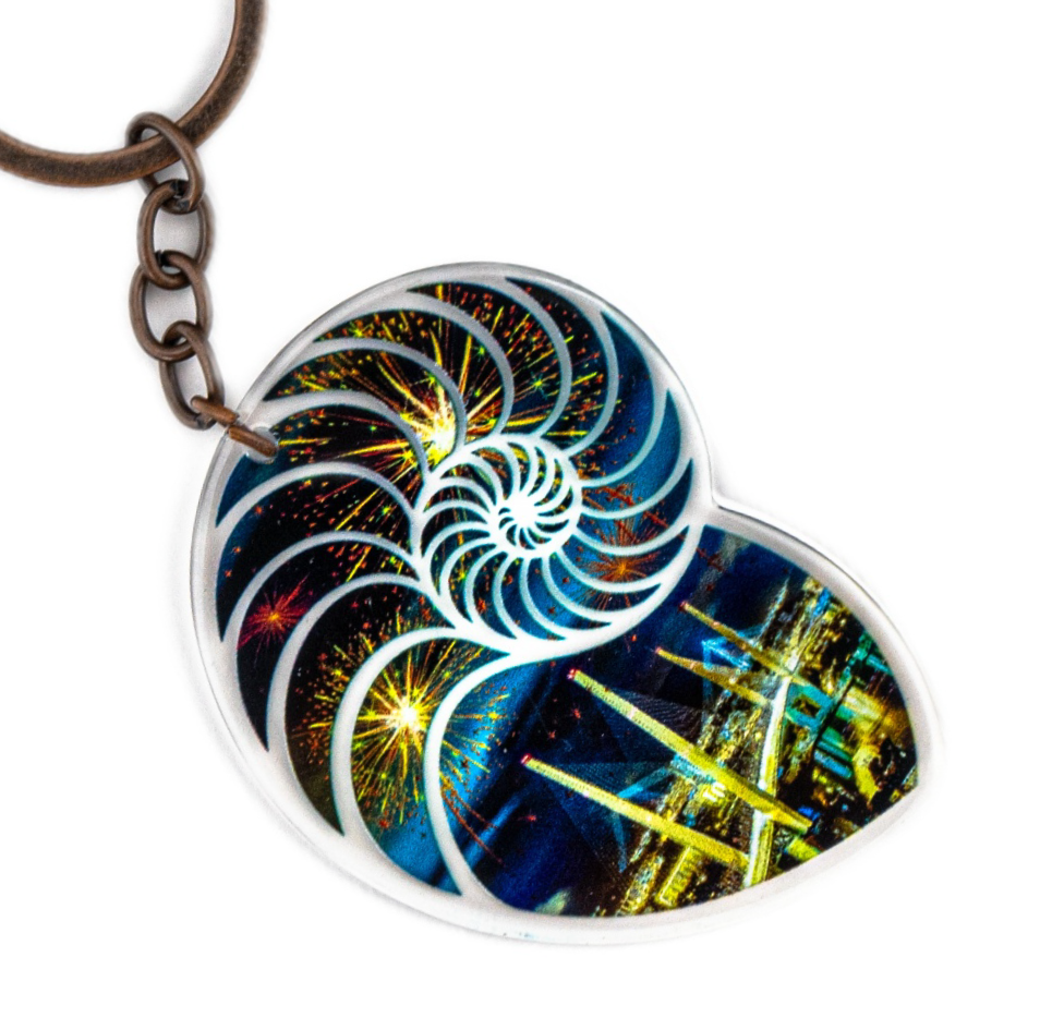 Брелок с акриловой 2-сторонней подвеской с полноцветной печатью НАУТИЛУС ВЛАДИВОСТОК НОЧЬ и канатной подвеской МОРСКОЙ УЗЕЛ. Кольцо: серебро. Материал: акрил, металл, нейлон. Размер: 12,5х4,5х1 см. Упаковка: картонный подвес.
