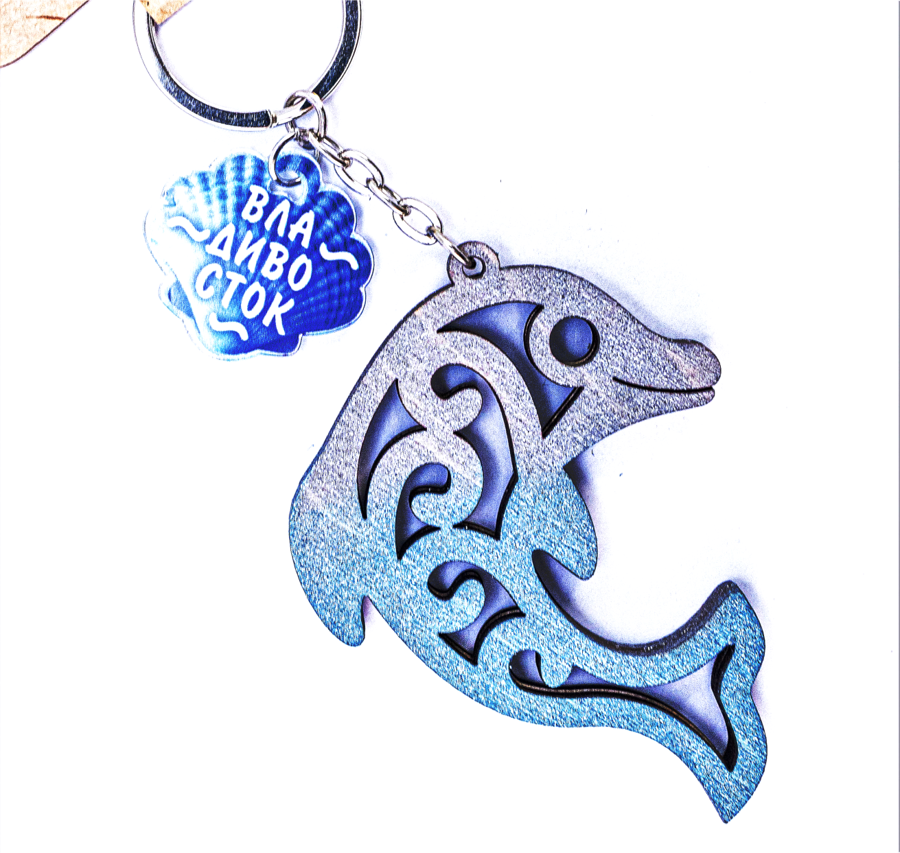 Брелок деревянный ДЕЛЬФИН с акриловым подвесом Владивосток