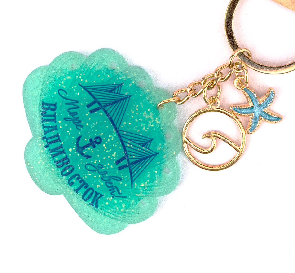 Брелок с ПВХ подвеской ВЛАДИВОСТОК МОРЕ ЗОВЕТ и металлическими "золотыми" подвесками ВОЛНА и ЗВЕЗДА бирюзовый. Материал: фурнитура металлическая "золотоая", мягкий ПВХ. Размер: 8,5хсм. Упаковка: ПП пакет.