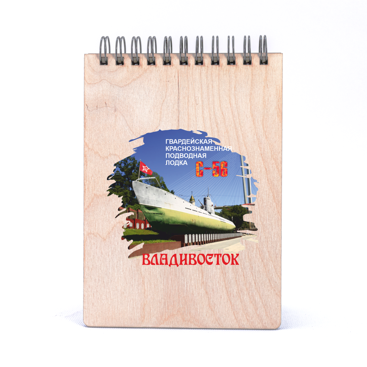 Блокнот А6 60 листов белой бумаги в деревянной обложке с печатью Подлодка. Размер:10х15 см. Материал: фанера 3мм, бумага. Упаковка: ПП пакет.