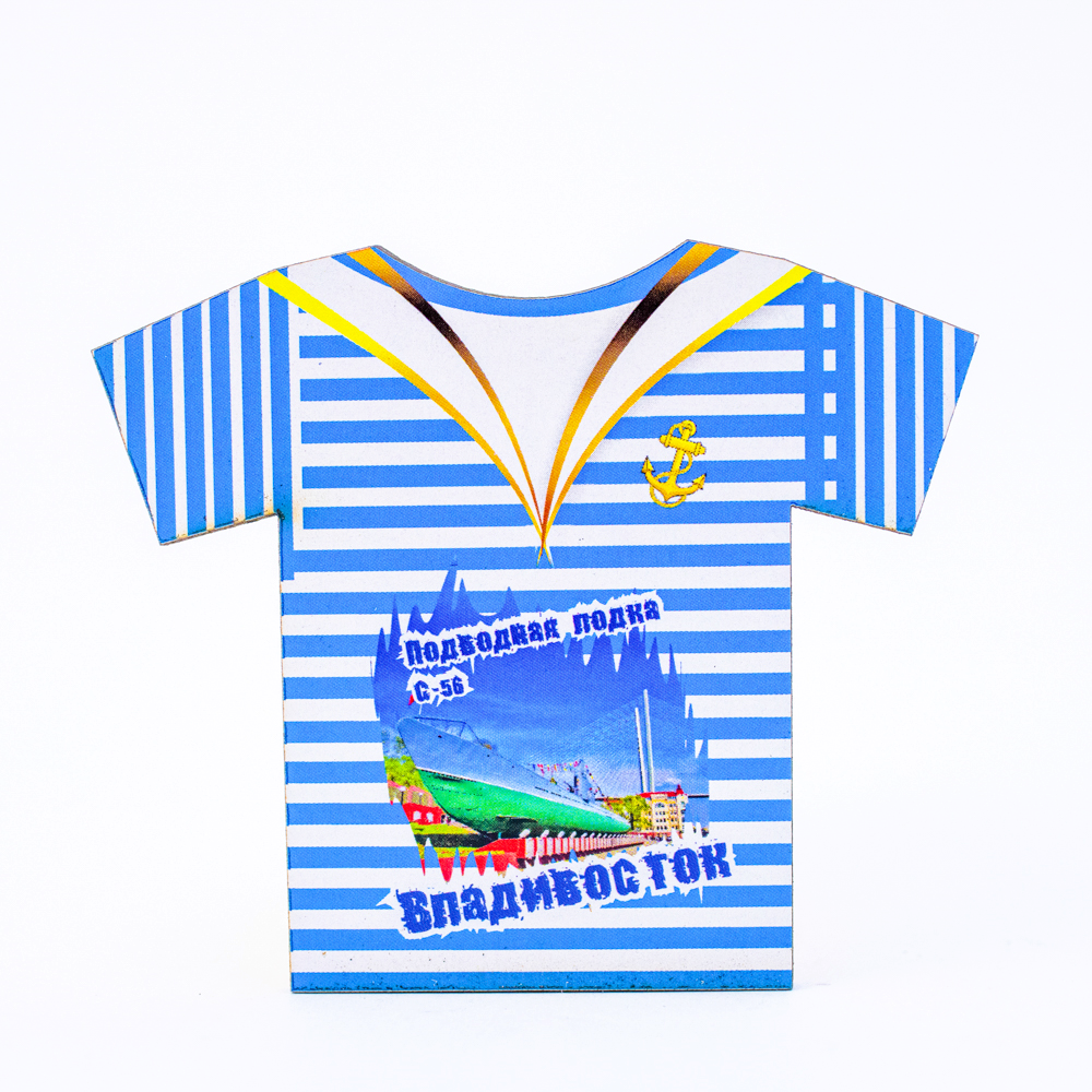 Магнит деревянный 1-слойный ТЕЛЬНЯШКА ВЛАДИВОСТОК: ПОДЛОДКА . Материал: ДВП, бумага. Размер 70х85 мм. Упаковка: ПП пакет.