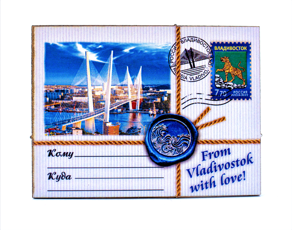 Магнит деревянный 1-слойный ВЛАДИВОСТОК ПИСЬМО: МОСТ ДЕНЬ. Материал: ДВП, бумага. Размер 80х60мм. ПП пакет. Владивосток