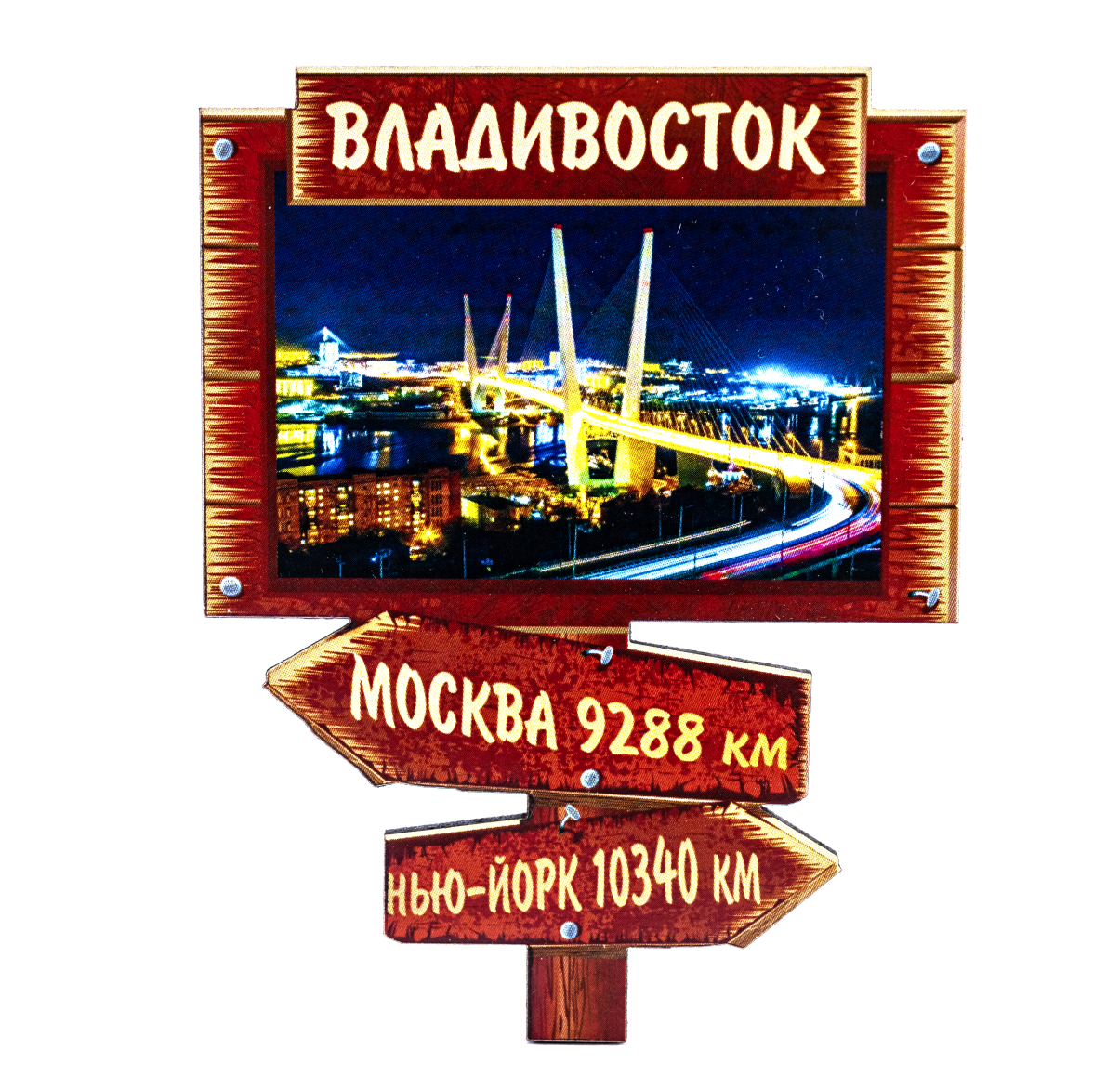 Магнит деревянный 1-слойный Влд Указатель (Мост ночь)