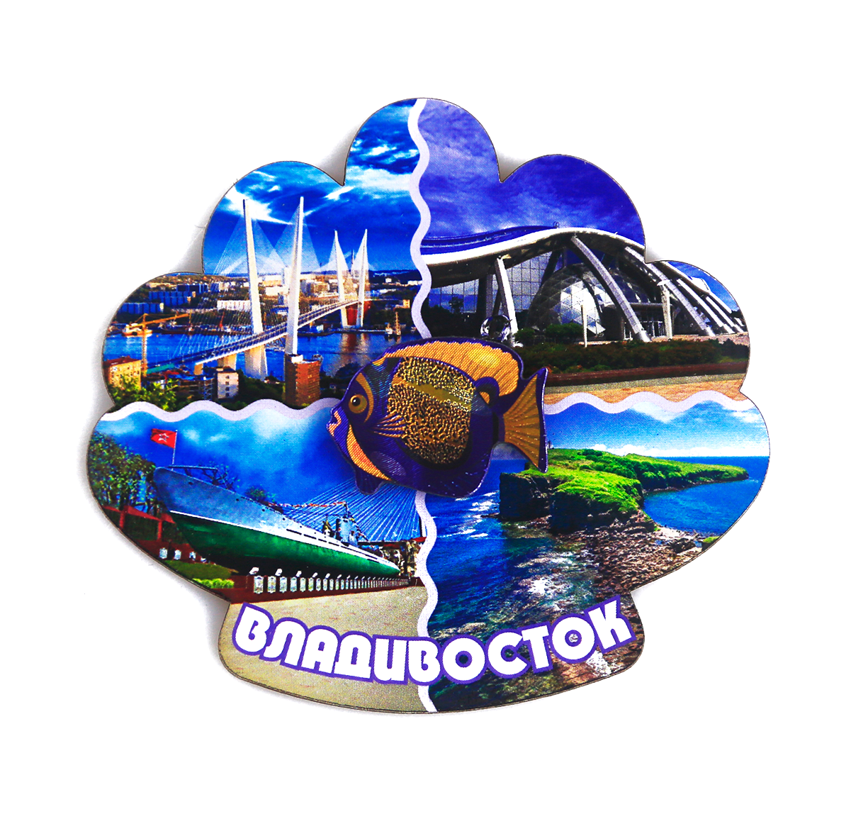 Магнит деревянный с декоративным элементом Влд Гребешок (Подлодка Мост Ок-м Тобизина)