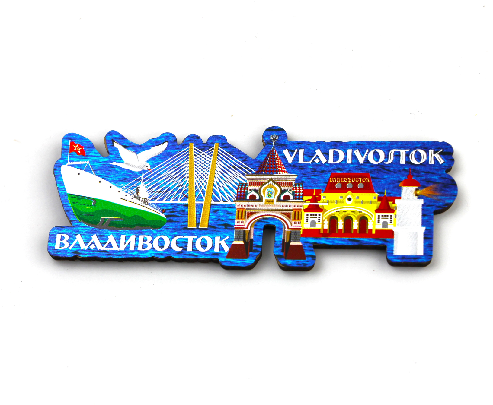 Магнит деревянный с фольгой Владивосток КОЛЛАЖ АРКА
