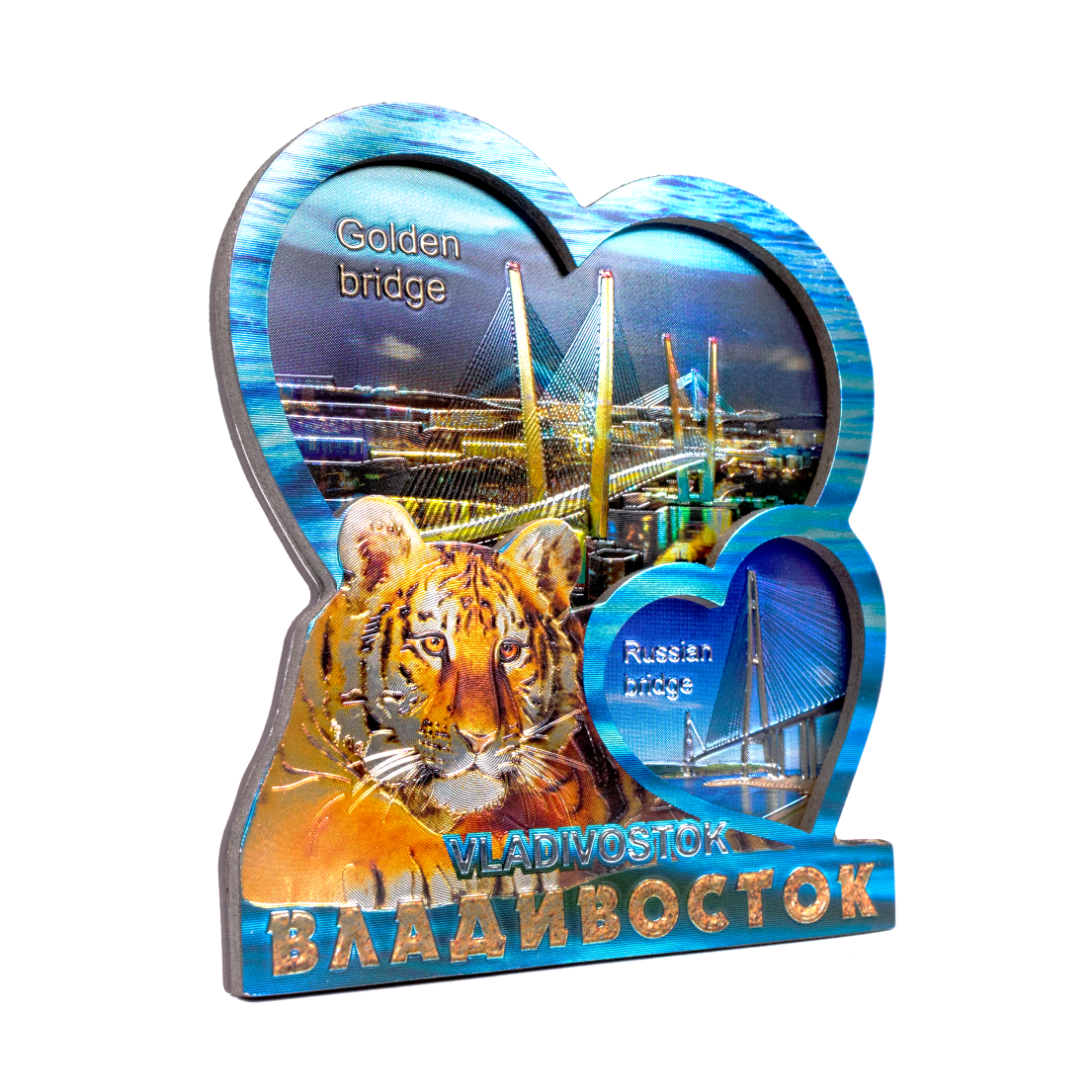 Магнит фольгированный 2-слойный ВЛАДИВОСТОК СЕРДЦА ТИГР: МОСТЫ. Материал: фольга, EVA. Размер 90*90мм. ПП пакет.