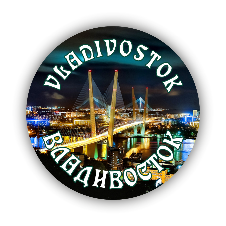 Магнит закатной с открывалкой для бутылок ВЛАДИВОСТОК: МОСТ НОЧЬ. Д65мм. Материал: металл, пластик. ПП пакет.