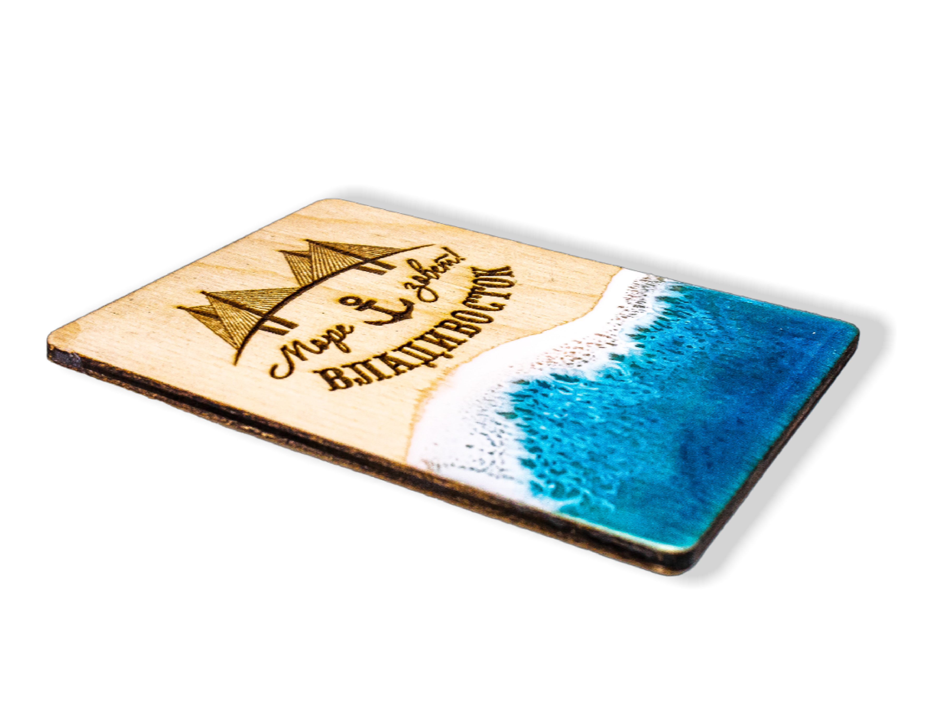 Магнит деревянный с эпоксидной смолой МОСТ ЯКОРЬ ВЛАДИВОСТОК.