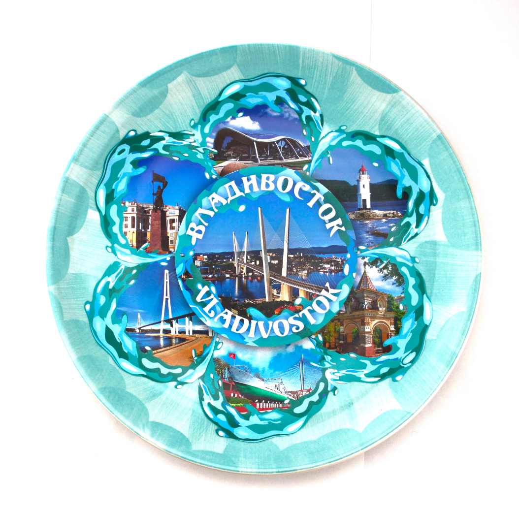 Тарелка керамическая БИРЮЗОВАЯ ВЛАДИВОСТОК КОЛЛАЖ