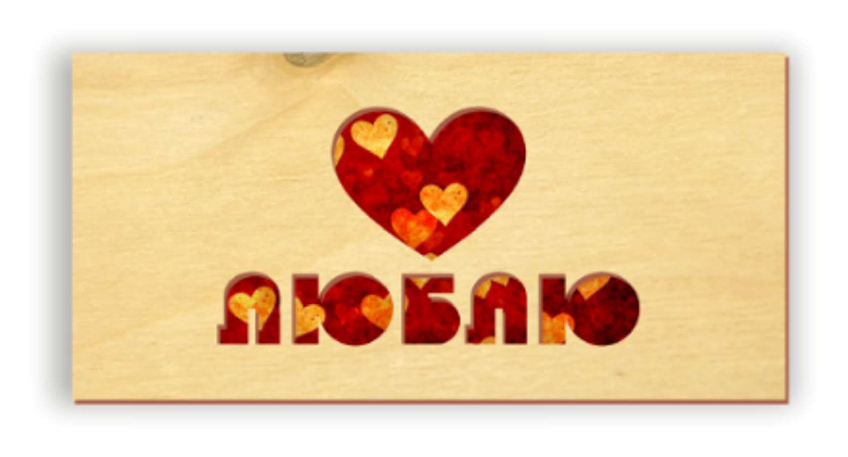 Деревянный конверт для денег ЛЮБЛЮ с полноцветным изображением.