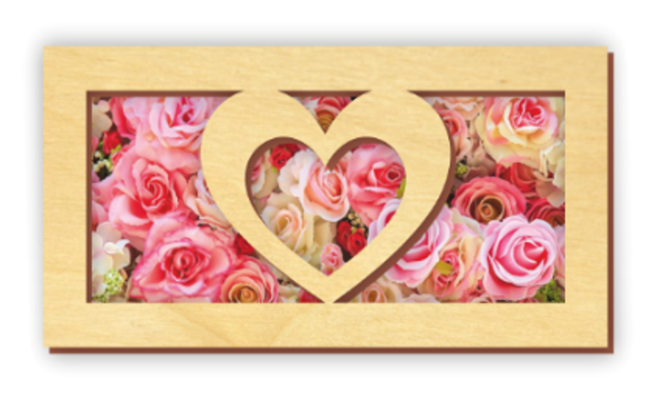 Деревянный конверт для денег СЕРДЦЕ с полноцветным изображением.