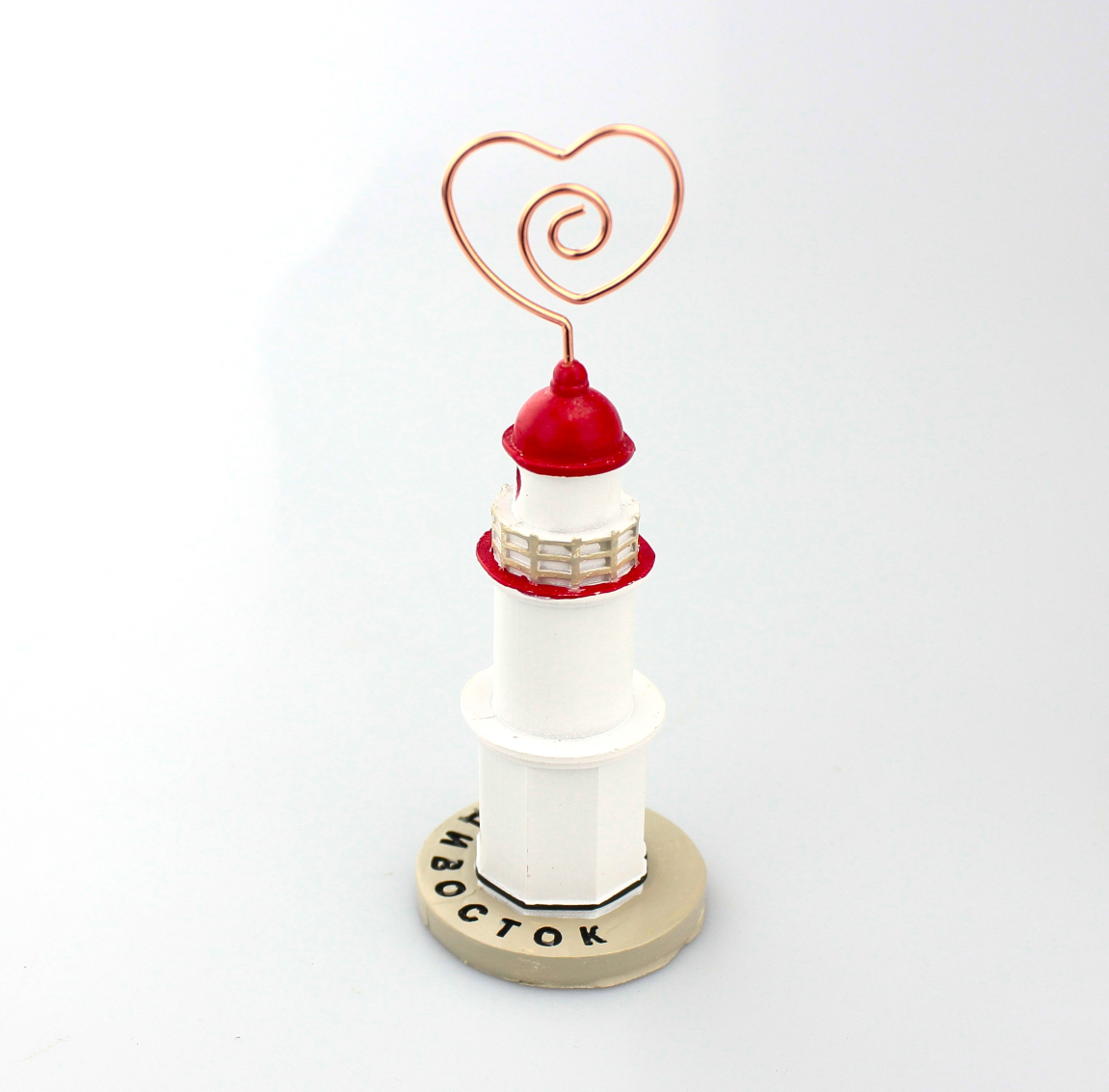 Держатель для визиток, фото, записок Маяк Токаревский с сердцем. Настольный сувенир. Материал: полистоун. Размер