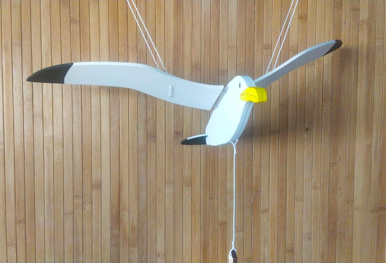 Мобиль "Чайка" - набор для раскрашивания в картонной коробке: чайка на подвесе, краски, кисточка. Материал: фанера, краски акриловые, шнур капроновый. Размер в подвешеном виде 56х30х85 см. Размер коробки: 25х34х3 см