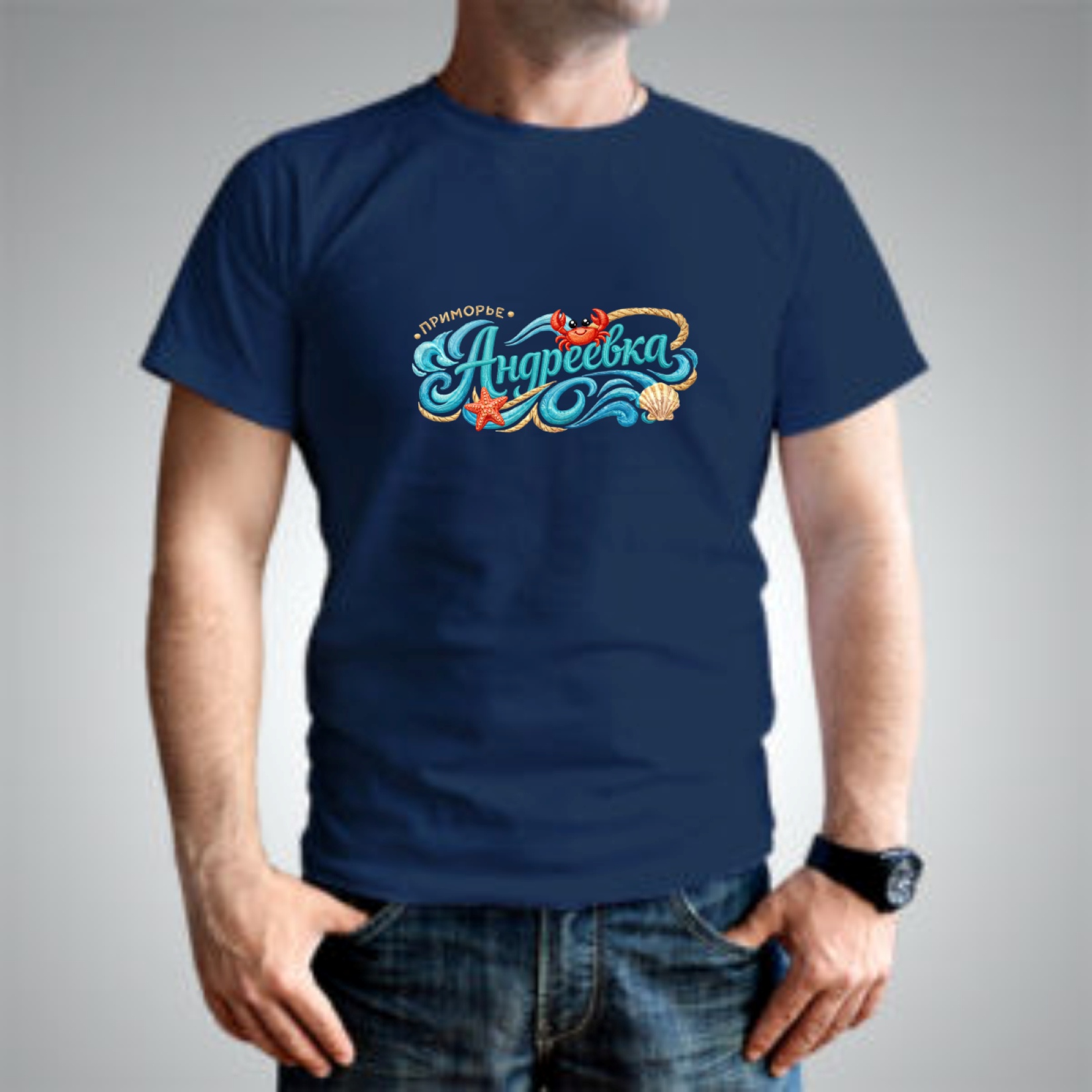 Футболка с полноцветной печатью унисекс Андреевка КАНАТ. Цвета: синий, желтый, белый, красный, бежевый, зеленый, черный. Размеры: 48, 50, 52, 54, 56. Материал: 100% хлопок. Упаковка ПП пакет.