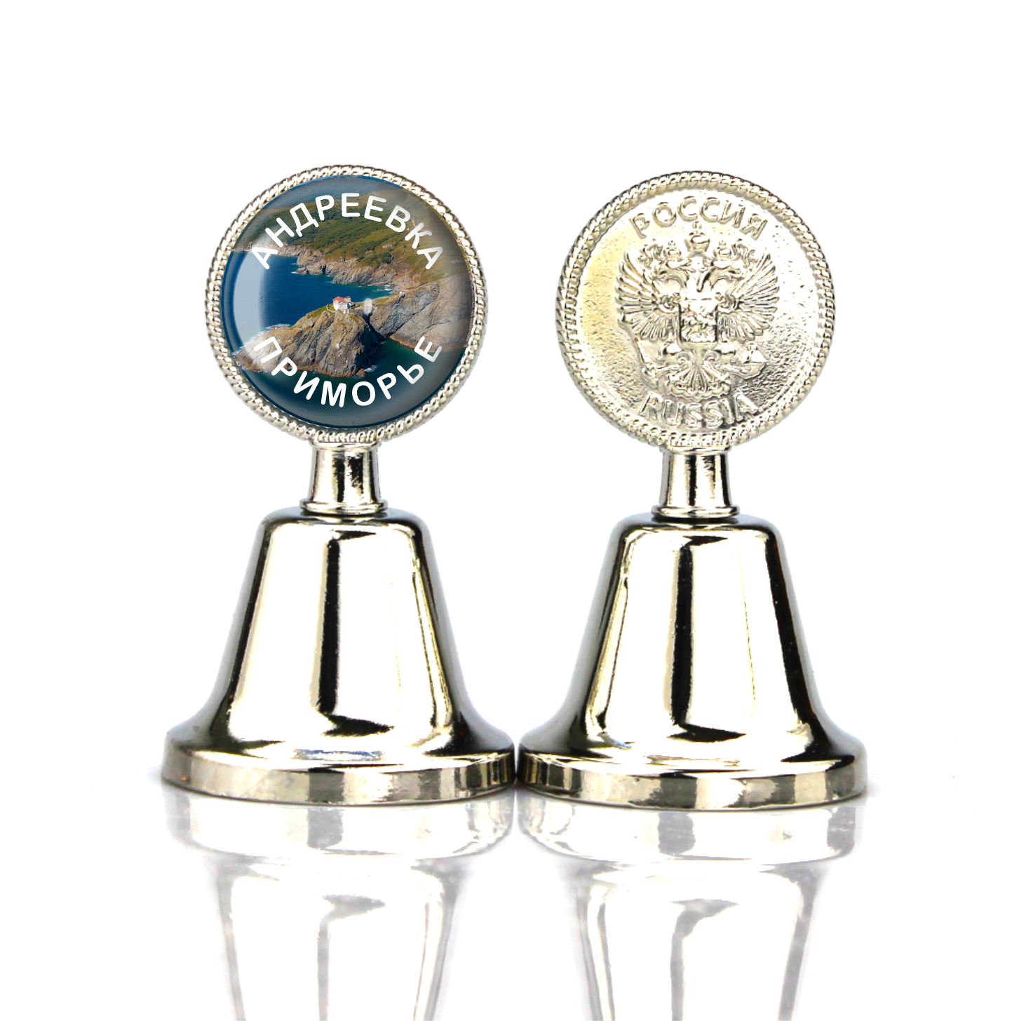 Колокольчик сувенирный с эпоксидной смолой Андреевка Маяк. Размер: 4.5х4.5х8 см. Материал: металл, эпоксидная смола. Упаковка: белая картонная коробка.