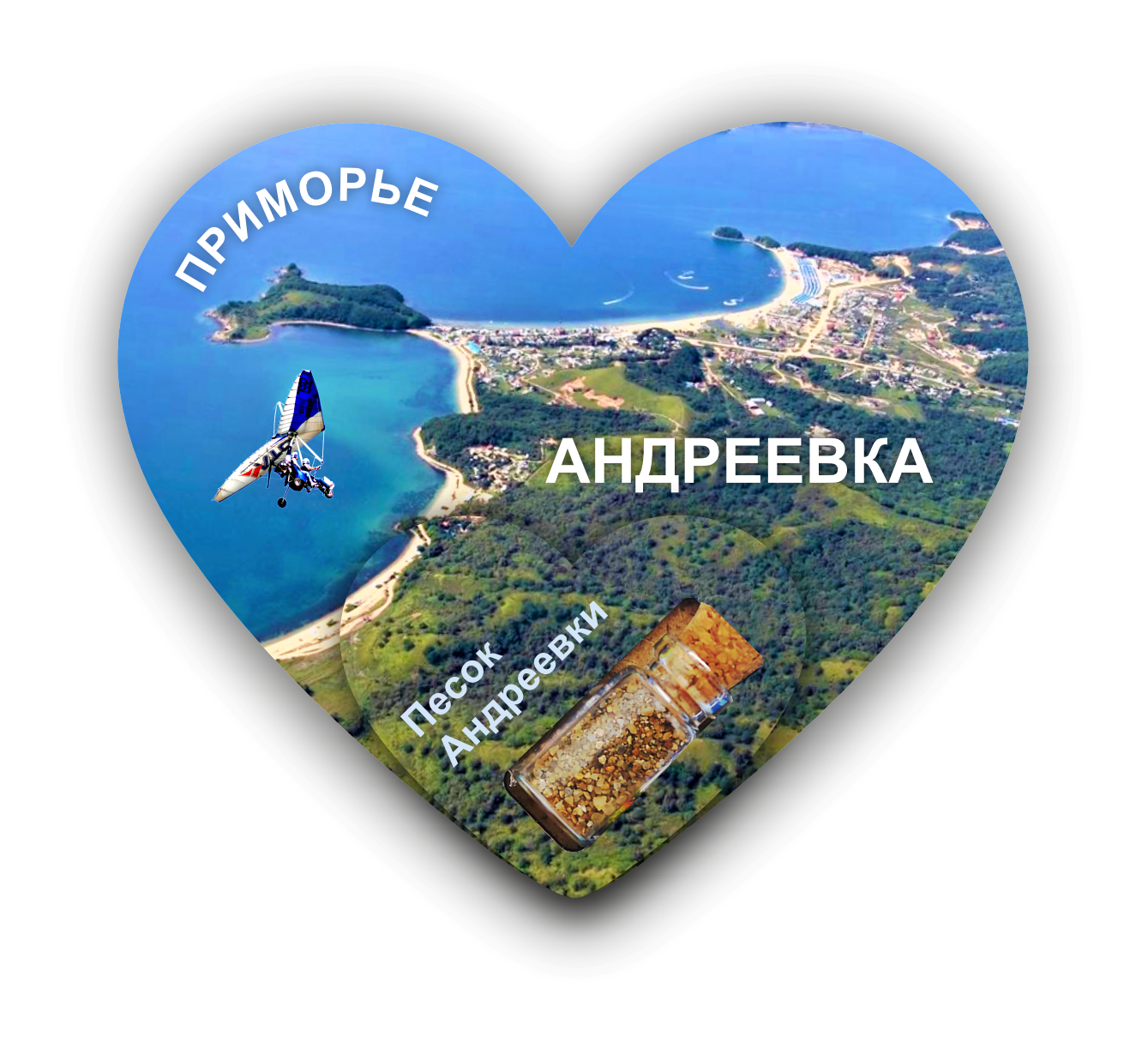 Магнит деревянный 2-слойный с песком СЕРДЦЕ Андреевка