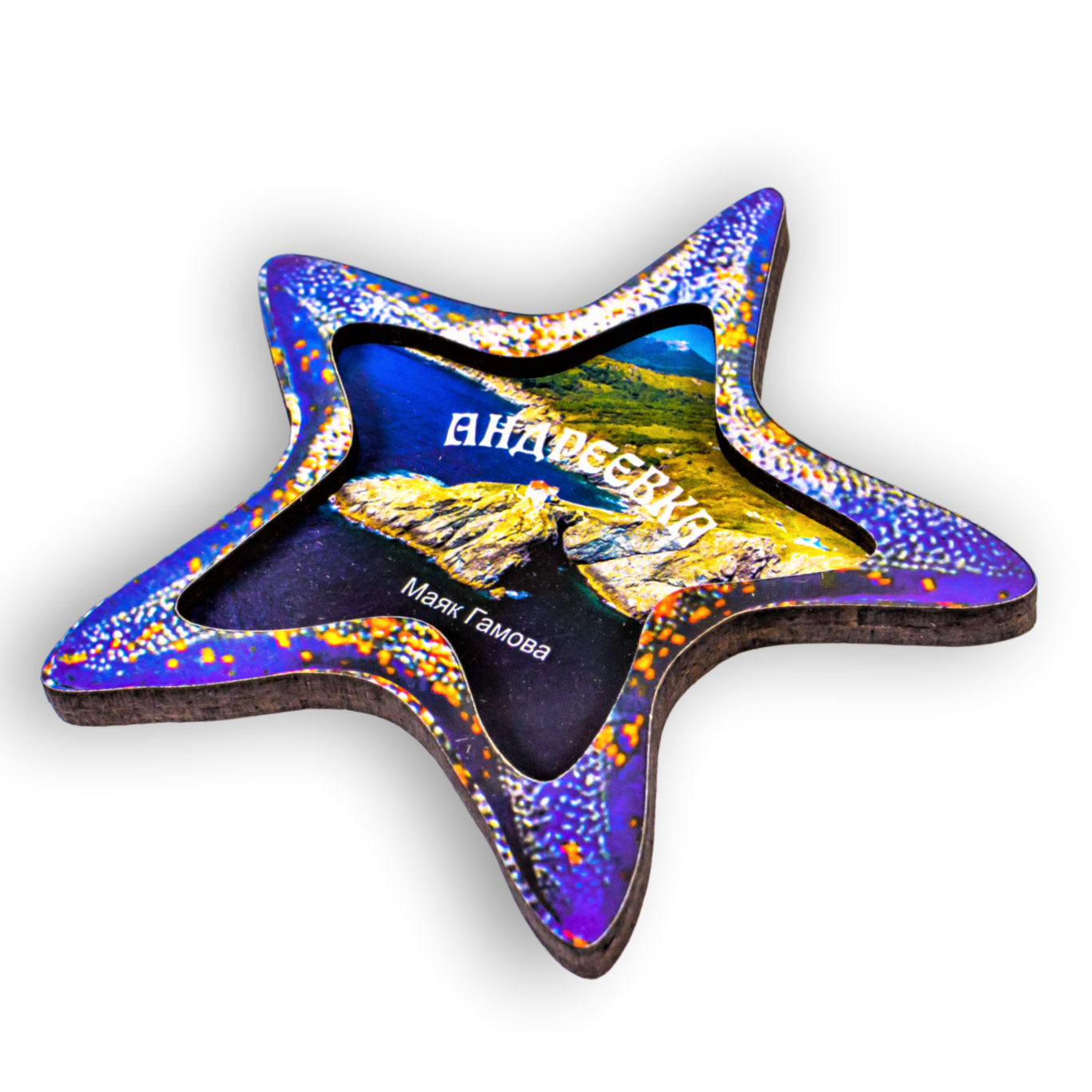 Магнит деревянный 2-слойный ЗВЕЗДА Андреевка Маяк