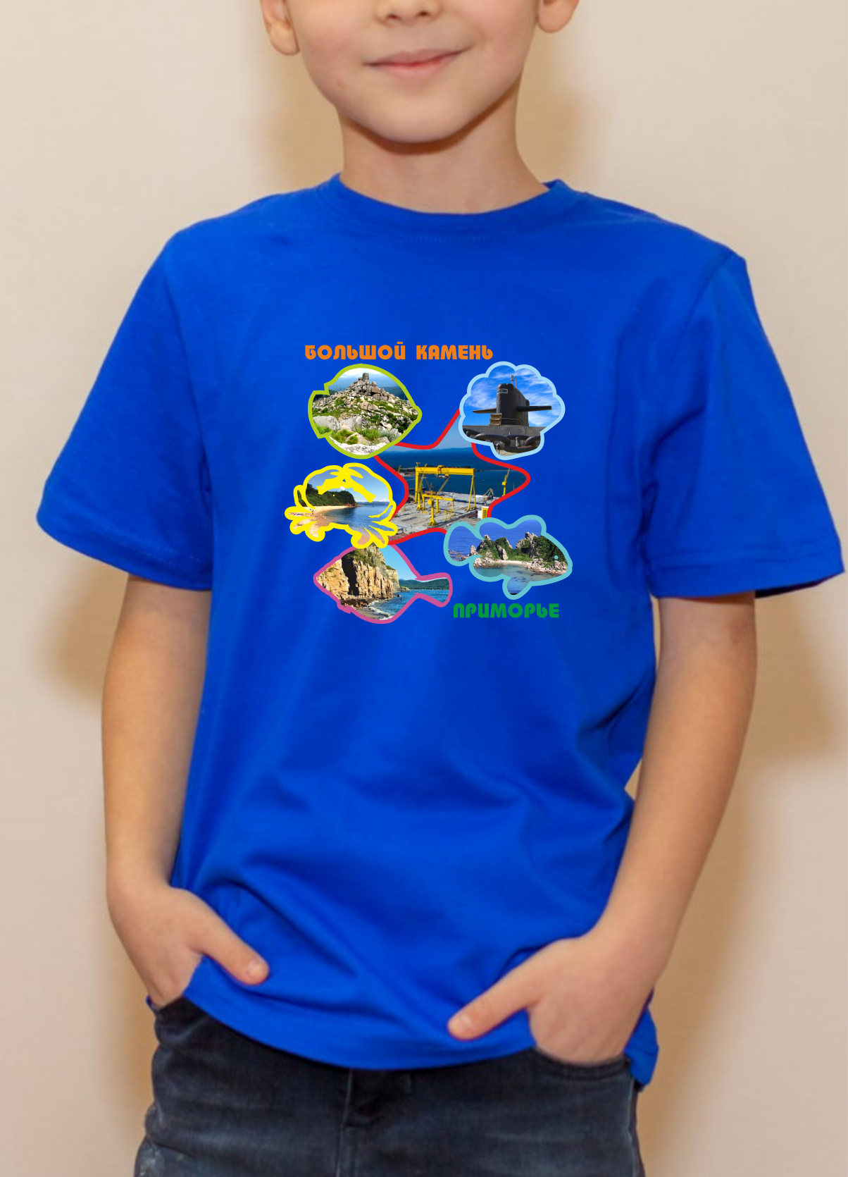 Футболка детская с полноцветной печатью Большой камень Коллаж. Размеры: 90-140. Цвета - в ассортименте. Материал: 100% хлопок. Упаковка ПП пакет.
