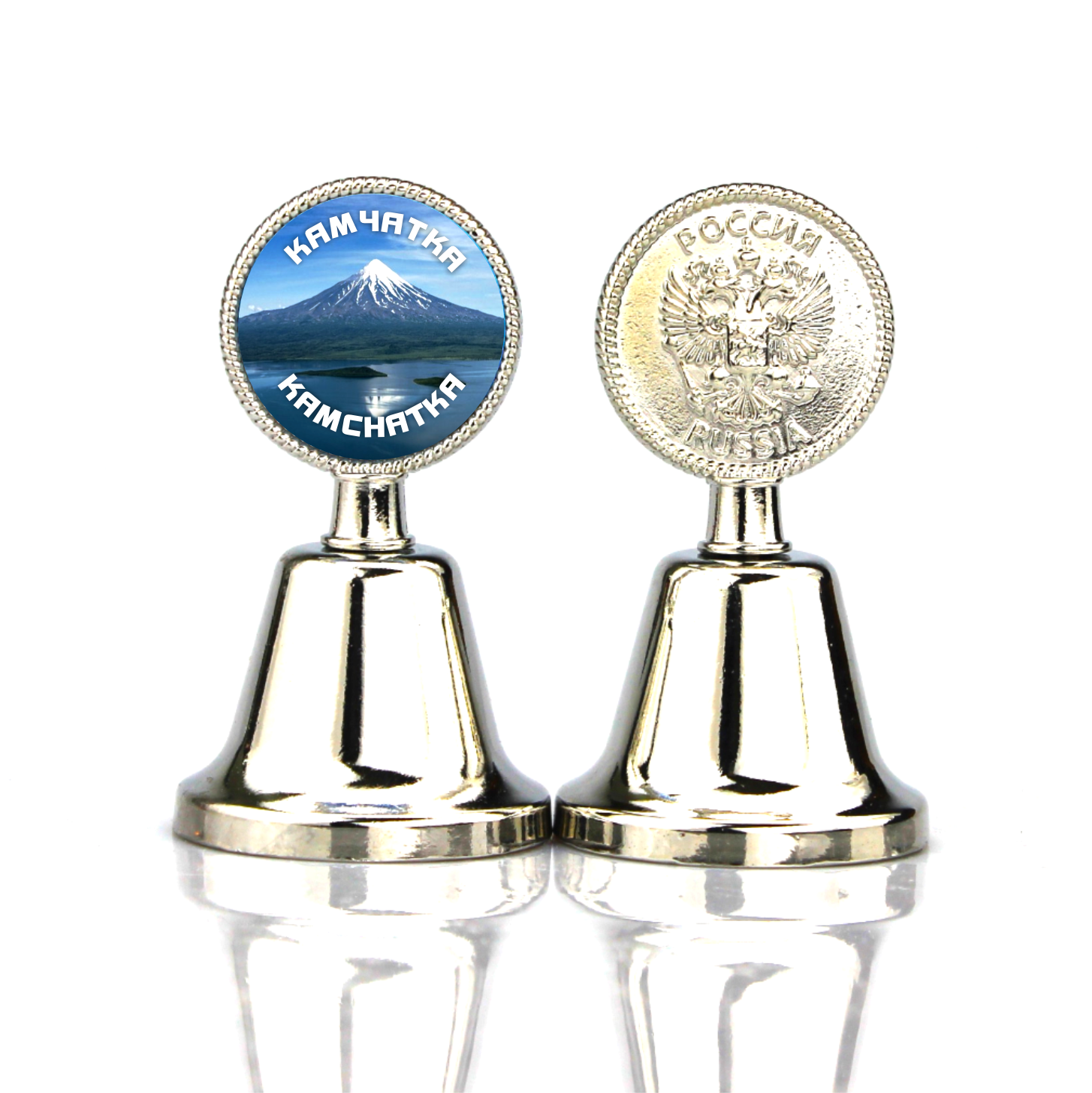 Колокольчик сувенирный с эпоксидной смолой Камчатка Вулкан. Размер: 4.5х4.5х8 см. Материал: металл, эпоксидная смола. Упаковка: белая картонная коробка.