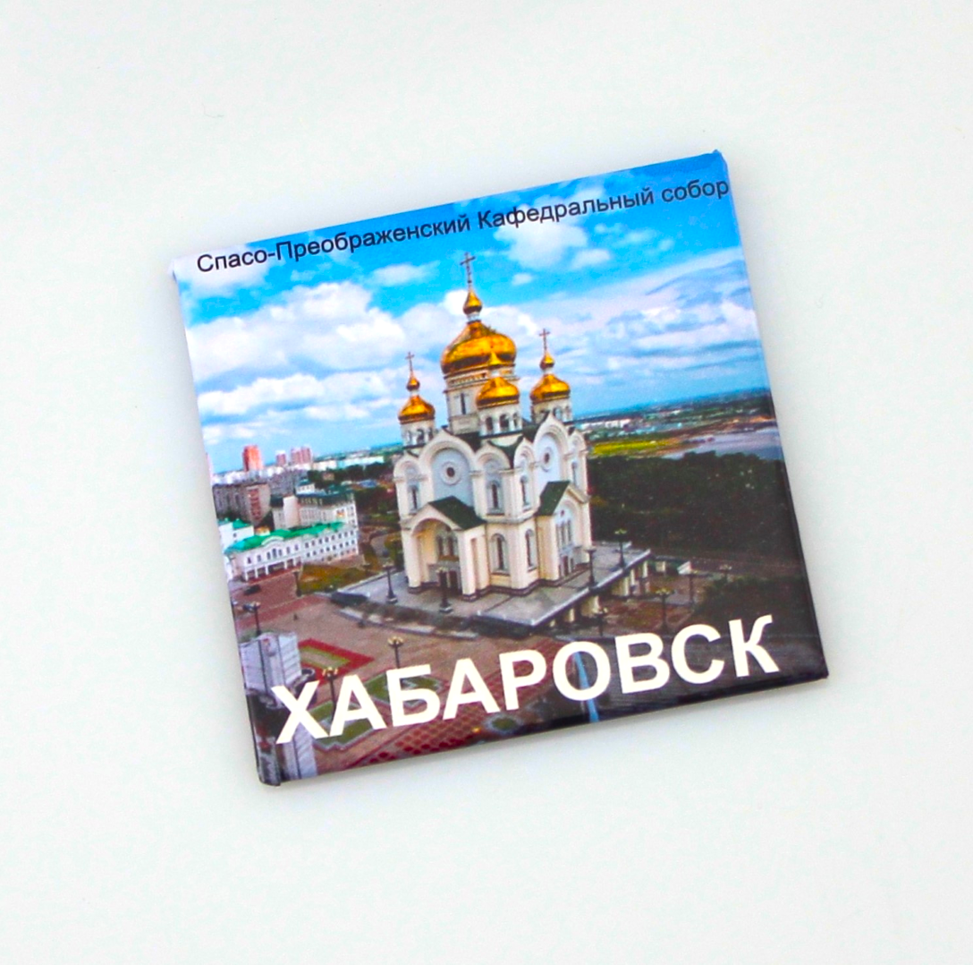 Магнит жестяной Хабаровск Храм. Материал: металл. Размер 55х55х4 мм. Упаковка: ПП пакет.