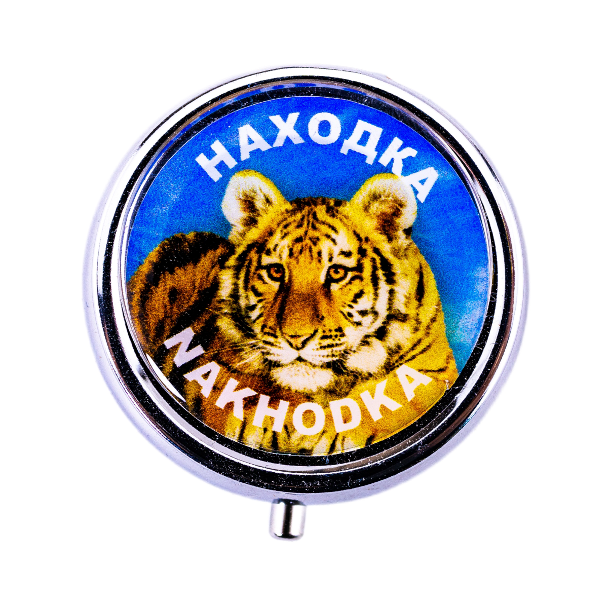 Таблетница круглая металлическое с фольгированной тисненной вставкой Находка Тигр. Материал: пластик,металл. Размер: 50х50 мм. Упаковка: пакет.