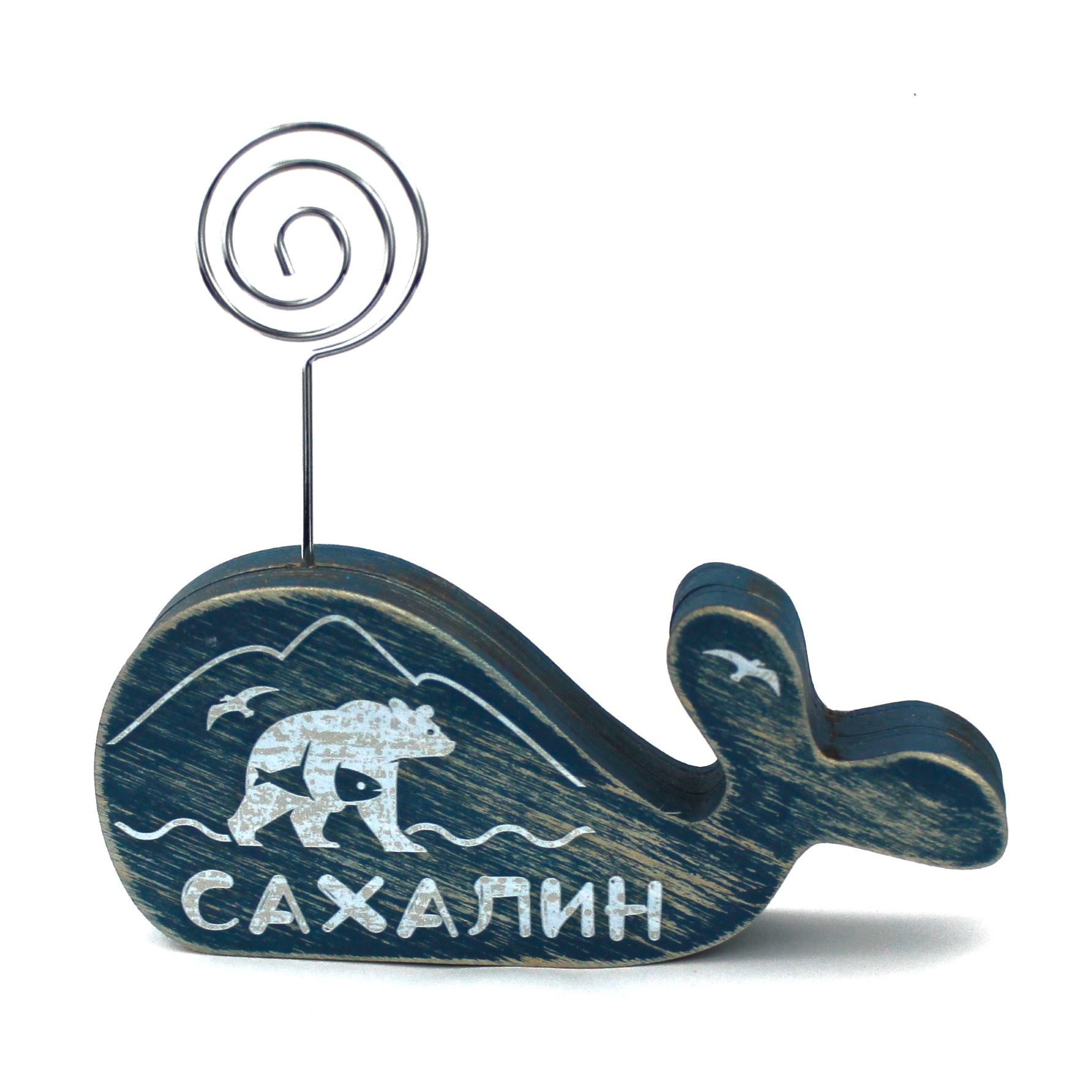 Держатель для визиток, фото, записок КИТ САХАЛИН. Настольный сувенир РУЧНОЙ РАБОТЫ. Материал: фанера березовая, металл. Размер