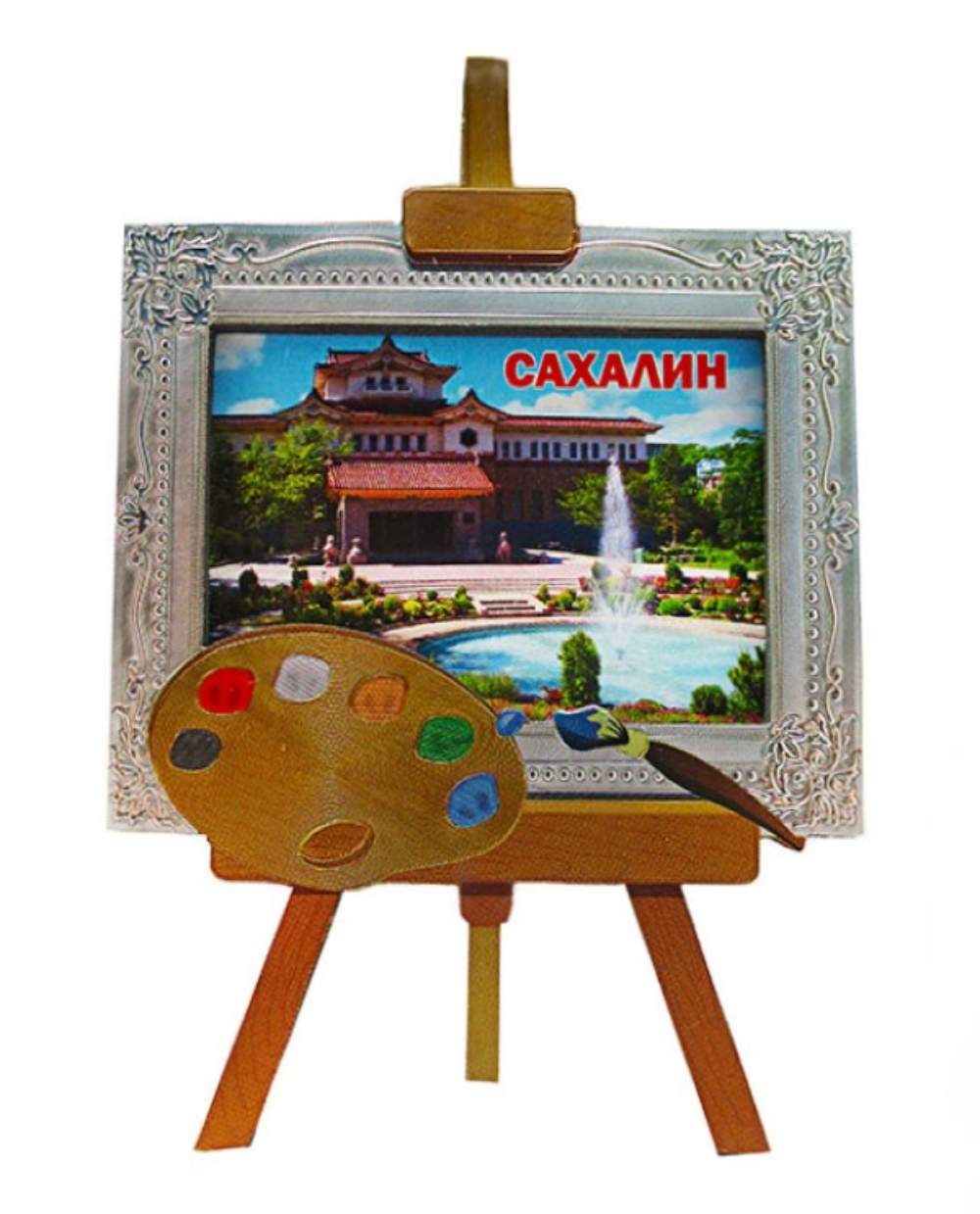 Магнит деревянный с накладным элементом САХАЛИН МОЛЬБЕРТ МУЗЕЙ. Состав: ДВП, бумага, фольга. Размер 100х70мм. ПП пакет.