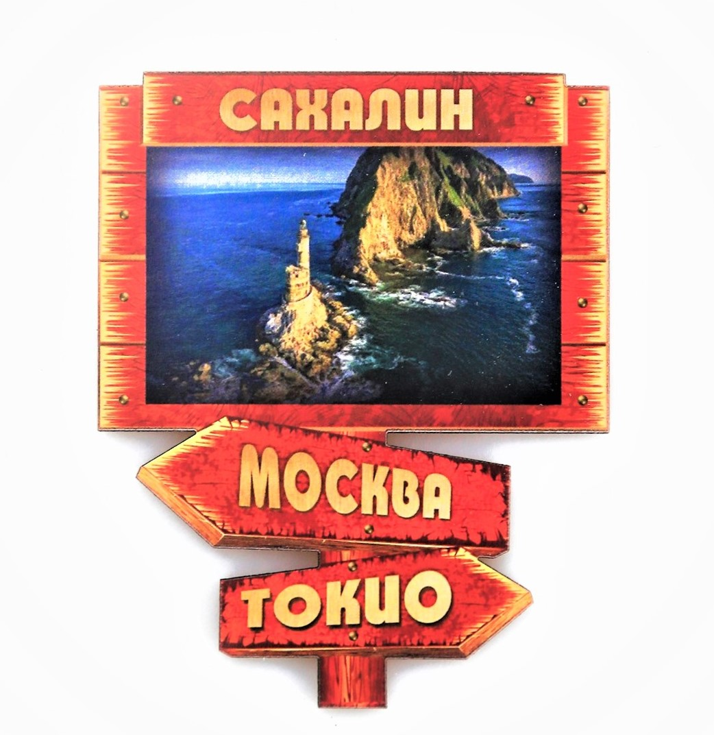 Магнит 1-слойный УКАЗАТЕЛЬ САХАЛИН. Материал: ДВП, бумага. Размер 100х70 мм. Упаковка: ПП пакет.