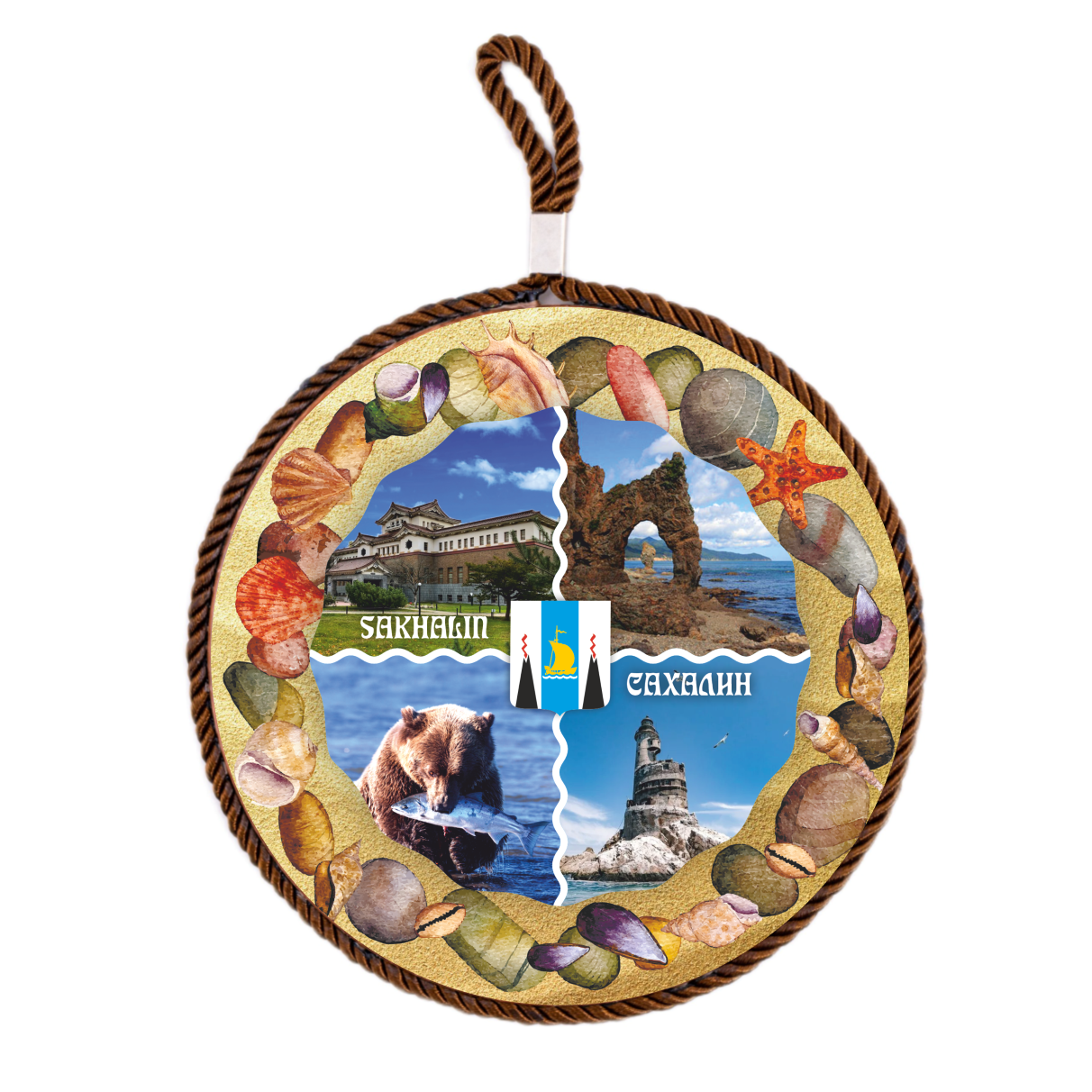Панно с подвесом Сахалин Ракушки. Размер:18х18х1 см. Материал: керамика, капроновый канат, ПВХ. Упаковка: картонная коробка с окном.